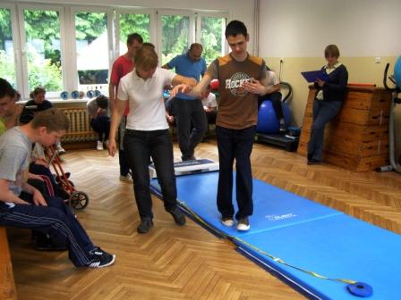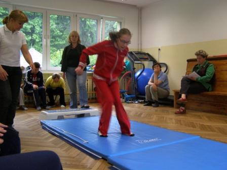 Ta ostatnia konkurencja może dla odwiedzających naszą internetową stronę nie jest znana, więc kilka słów na ten temat. Goalball to gra drużynowa dla osób niewidomych i słabowidzących. Została stworzona w 1946 roku przez Niemca Seppa Reindle i Austriaka Hansa Lorenzena w ramach doskonalenia sposobów rehabilitacji niewidomych weteranów II wojny światowej. Drużyna składa się z trzech zawodników, grających z zasłoniętymi oczami, broniących bramki o wysokości 1,3 metra zajmującej całą szerokość boiska. Boisko do goalballa ma 9 x 18m i podzielone jest na trzy strefy: bramkową (na szerokość 3 m od bramki), rzutu (3 m za strefą bramkową) i strefę środkową, zajmującą szerokość 6 m na środku boiska. Piłka musi być toczona. Musi dotknąć podczas rzutu strefy rzutu zarówno drużyny rzucającej, jak i broniącej. Po pierwszym kontakcie piłki z zawodnikiem drużyny broniącej, drużyna ta ma 10 sekund na odrzucenie piłki. Jeden zawodnik może tylko dwa razy pod rząd rzucić piłkę. Za przewinienia drużyna może otrzymać rzut karny. Gra trwa 2 razy po 10 min. Piłka zawiera dzwoneczki i waży 1,25kg. Mecze rozgrywane są w absolutnej ciszy. Dla wyrównania szans zawodników niewidomych i słabowidzących, podczas meczu goalballa gracze mają zaklejone specjalnymi plastrami oczy oraz dodatkowo noszą nieprzeźroczyste gogle. Wszystkie linie na boisku są wyklejone plastrem, pod którym znajduje się sznurek w celu ułatwienia poruszania się i orientacji na nim, gdyż zawodnicy jedną ręką niemal cały czas dotykają podłoża.