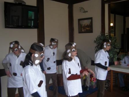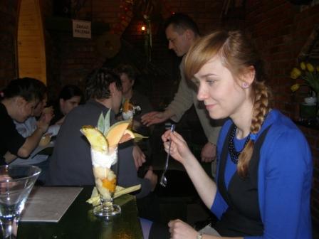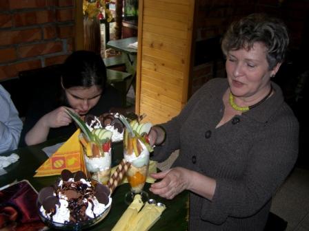 Na przedstawienie przybyli goście z dziećmi. Później uczniowie zostali zaproszeni na uroczysty obiad. Punktem kulminacyjnym był deser w zaprzyjaźnionej cukierni w Kałęczynie. Każdy mógł zamówić cokolwiek sobie zamarzył - większość wybrała desery lodowe. |