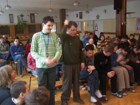 Konkurs prowadziła s. Lidia. Gościem specjalnym był ks. Rektor Grzegorz Ostrowski, a z Nim trafność odpowiedzi zatwierdzali: p. Iza Komorowska-Warenik i p. Ania Woźniak.