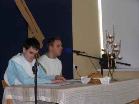 Po przedstawieniu łamaliśmy się chlebem, jak Jezus ze swoimi uczniami w Wieczerniku. To było nasze przedświąteczne PRZEPRASZAM, abyśmy z czystym sercem i z radością mogli pojechać do swoich domów rodzinnych. Swoją obecnością ucieszyli nas: Matka Anna Maria, Pan Prezes Władysław Gołąb z małżonką, s.Regina, nauczyciele, wychowawcy i pracownicy naszego Domu. Chłopcy występujący jako lektorzy tekstu i goście otrzymali płytki z nagraną wcześniej audycją w Studio "Arka". Każdy, kto nie był dzisiaj z nami może posłuchać tej audycji na naszej stronie. Zapraszamy. |