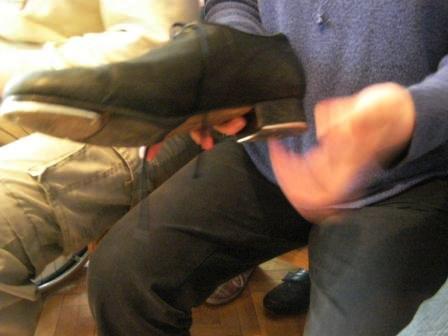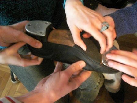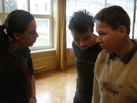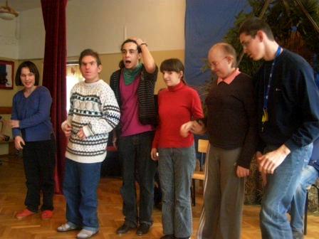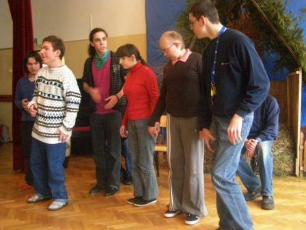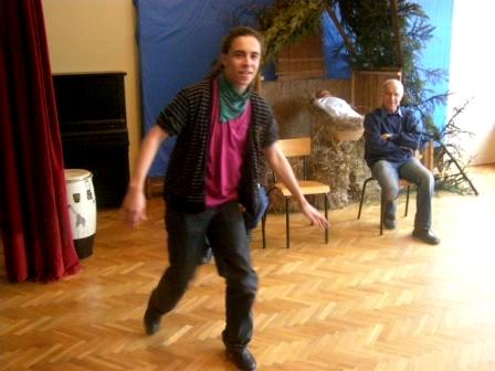 Pokazywałem młodzieży specjalne obuwie, podkute blachami. Wywołały one wielkie zdziwienie, gdyż chodzenie w podkutych butach wydało im się dość dziwne. Jednak kiedy zacząłem stepować ujrzałem na ich twarzach radość i zrozumienie po co są one podkute. Po krótkim pokazie, zorganizowałem parę konkursów. Ochotnicy mogli się nauczyć kilku podstawowych kroków, które dla nich okazały się bardzo trudne. Mogli odgadywać imiona wystukiwane przeze mnie stopami, a przeliczaliśmy to na punkty brajlowskie. Na samym końcu zostałem mile zaskoczony, gdyż poddano mnie próbie. Daniel wygrywał rytm na bębnie, a ja miałem go zatańczyć, jednak wygrywał w takim tempie, iż nie dałem rady się dołączyć. Michał Wierzbowski |