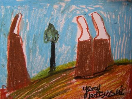 Jurek rysuje to, co dyktuje mu serce. Teraz uległ czarowi JUBILEUSZU. Jego serce pełne jest barw i światła, które przenosił na papier i tym sprawiał nam wiele radości. Jureczku, jesteś kochany!