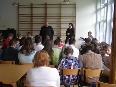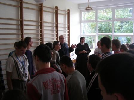 Powitaliśmy Księdza hymnem szkolnym i staraliśmy się zaśpiewać, co gra w naszej duszy. Trafiliśmy na swego, bo Ksiądz odczytał, co w nas jest żarem serca i śpiewał razem z nami. Dziękujemy za radość przyniesioną do nas i chęć spotkania nas jeszcze... Liczymy, że od dzisiaj Ksiądz nie będzie już czekał na zaproszenie, ale sam chętnie nas będzie odwiedzał. Ufamy, że nasze spotkanie naznaczone jest czymś, co uniesie się w Laskach, jak dźwięki pięknej muzyki i rozraduje tych, co ją usłyszą... |