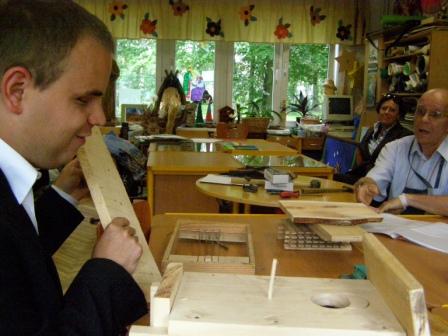 Nasi uczniowie uczęszczali do pracowni: drewna i tkactwa. Niżej załączamy zdjęcia z egzaminu i prace dyplomowe. Cieszymy się, że wszyscy zaliczyli egzamin, ale przede wszystkim z tego, że z wielką radością prezentowali swoje prace. Nauczyciele zasiadający w komisji egzaminacyjnej słuchali uczniów z wielkim zainteresowaniem. |