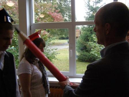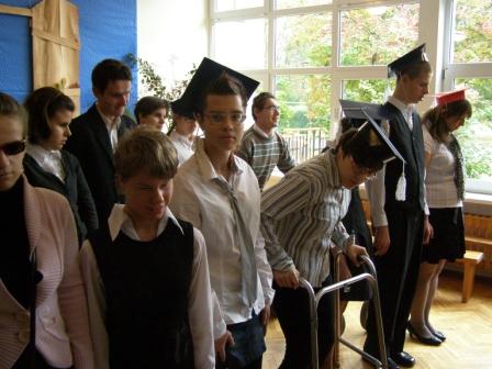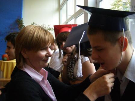 Następnym ważnym wydarzeniem było ślubowanie uczniów pierwszych klas gimnazjum i szkoły zawodowej - pasowanie na ucznia. Nie zabrakło również zabawy, konkursów: sprawdzenie odwagi, sprawdzenie wiedzy o szkole, orientacji przestrzennej, zdolności manualnych i umiejętności ubierania się oraz pracy zespołowej. Było gorąco, oj gorąco!!! Zresztą zobaczcie sami.