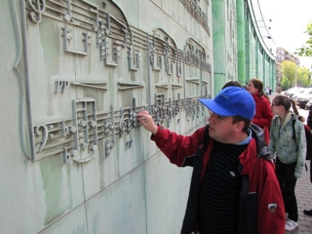 Następnie przeszliśmy przez dziedzińce Uniwersytetu Warszawskiego do ul. Krakowskie Przedmieście. Na niej mogliśmy chwilę odpocząć na ławeczce "Chopina" ustawionej przy budynku, w którym mieszkał ten znakomity kompozytor i pianista. Siedząc na niej wysłuchaliśmy skomponowanego przez niego utworu.