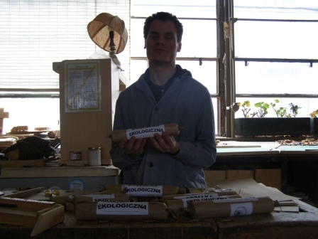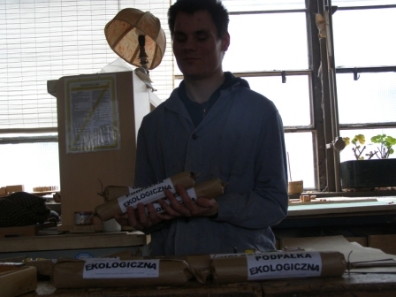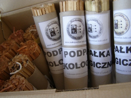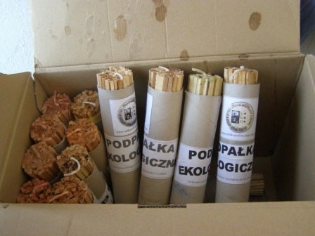 Podpałka ekologiczna - produkt samodzielnie wykonany przez uczniów niewidomych.