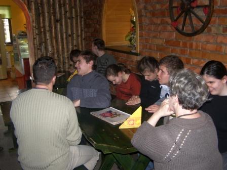 Na przedstawienie przybyli goście z dziećmi. Później uczniowie zostali zaproszeni na uroczysty obiad. Punktem kulminacyjnym był deser w zaprzyjaźnionej cukierni w Kałęczynie. Każdy mógł zamówić cokolwiek sobie zamarzył - większość wybrała desery lodowe. |
