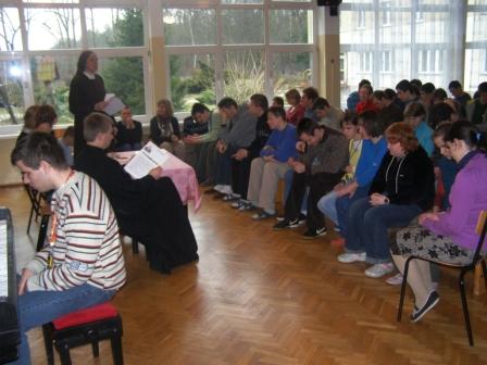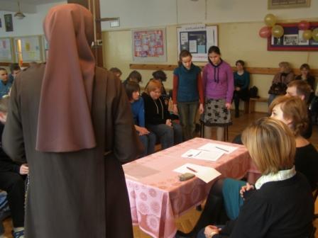 Konkurs prowadziła s. Lidia. Gościem specjalnym był ks. Rektor Grzegorz Ostrowski, a z Nim trafność odpowiedzi zatwierdzali: p. Iza Komorowska-Warenik i p. Ania Woźniak.