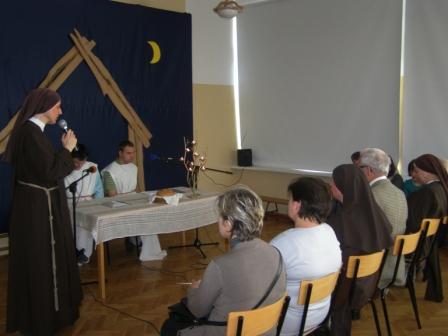 Po przedstawieniu łamaliśmy się chlebem, jak Jezus ze swoimi uczniami w Wieczerniku. To było nasze przedświąteczne PRZEPRASZAM, abyśmy z czystym sercem i z radością mogli pojechać do swoich domów rodzinnych. Swoją obecnością ucieszyli nas: Matka Anna Maria, Pan Prezes Władysław Gołąb z małżonką, s.Regina, nauczyciele, wychowawcy i pracownicy naszego Domu. Chłopcy występujący jako lektorzy tekstu i goście otrzymali płytki z nagraną wcześniej audycją w Studio "Arka". Każdy, kto nie był dzisiaj z nami może posłuchać tej audycji na naszej stronie. Zapraszamy. |