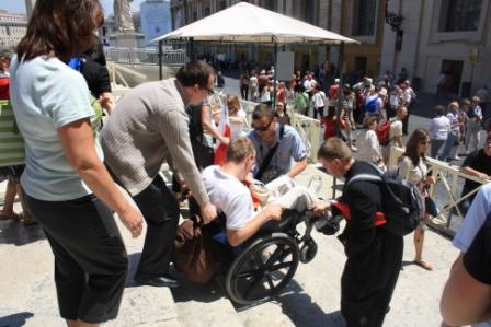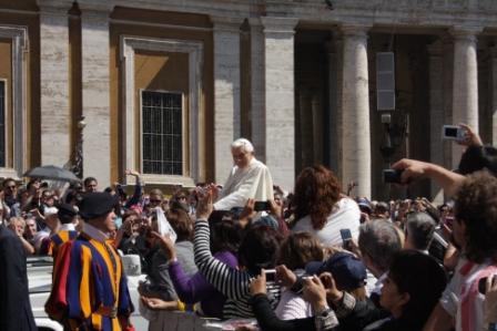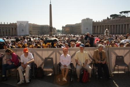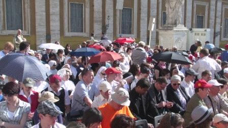 Środa. Rano pojechaliśmy na Plac św. Piotra na audiencję z Benedyktem XVI. Papież powiedział kilka zdań w różnych językach, też po polsku. Śpiewaliśmy "Ojcze nasz" po łacinie (Pater noster qui es in coelis...). Na koniec było błogosławieństwo.