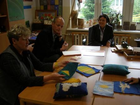 Nasi uczniowie uczęszczali do pracowni: drewna i tkactwa. Niżej załączamy zdjęcia z egzaminu i prace dyplomowe. Cieszymy się, że wszyscy zaliczyli egzamin, ale przede wszystkim z tego, że z wielką radością prezentowali swoje prace. Nauczyciele zasiadający w komisji egzaminacyjnej słuchali uczniów z wielkim zainteresowaniem. |