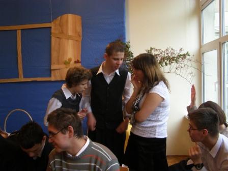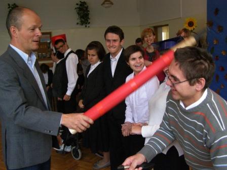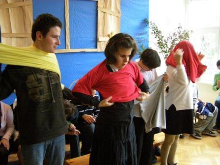Następnym ważnym wydarzeniem było ślubowanie uczniów pierwszych klas gimnazjum i szkoły zawodowej - pasowanie na ucznia. Nie zabrakło również zabawy, konkursów: sprawdzenie odwagi, sprawdzenie wiedzy o szkole, orientacji przestrzennej, zdolności manualnych i umiejętności ubierania się oraz pracy zespołowej. Było gorąco, oj gorąco!!! Zresztą zobaczcie sami.