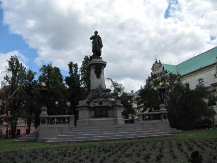 Następnie przeszliśmy przez dziedzińce Uniwersytetu Warszawskiego do ul. Krakowskie Przedmieście. Na niej mogliśmy chwilę odpocząć na ławeczce "Chopina" ustawionej przy budynku, w którym mieszkał ten znakomity kompozytor i pianista. Siedząc na niej wysłuchaliśmy skomponowanego przez niego utworu.