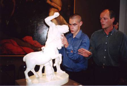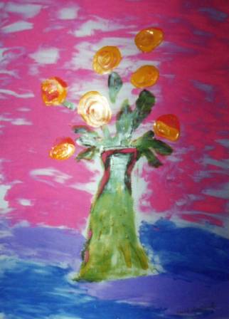 Dawid Wasilewski, niewidomy od urodzenia - ma tylko poczucie światła. Od przedszkola przebywał w Zakładzie dla Niewidomych w Laskach. Uczęszczał do naszej szkoły. Na co dzień, w szkole na zajęciach posługiwał się tylko technikami brajlowskimi. Chętnie rysował na specjalnej folii lub papierze przy pomocy dłutka linią ciągłą lub punktami. Odkrył też nową przestrzeń w sobie, która stała się radością w jego życiu. Dzięki niej pokonał jeszcze jedną barierę spowodowaną brakiem wzroku - samodzielnie malował farbami. Najczęściej były to kwiaty.